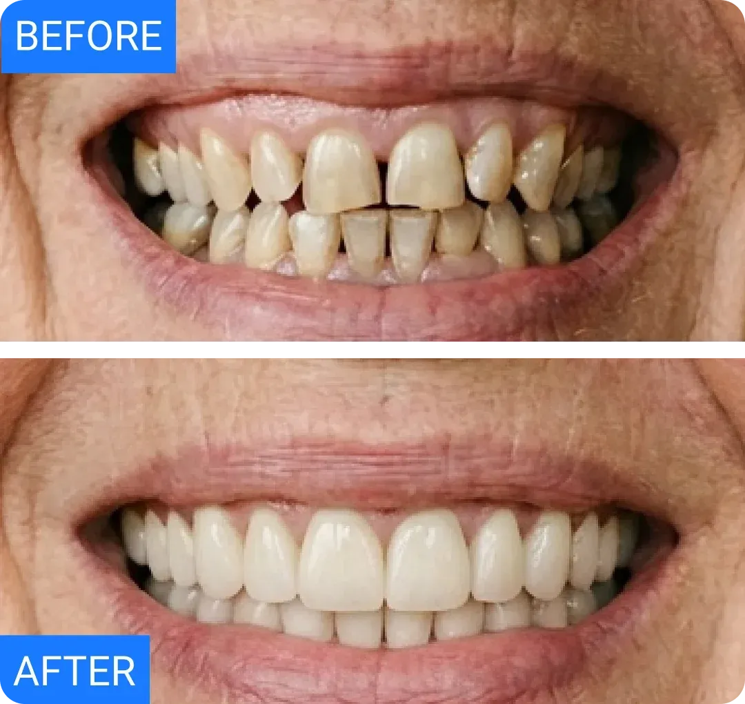 Disclaimer: Results may vary. These images are provided for illustrative purposes and represent individual patient outcomes. Your results may differ depending on factors such as oral health, lifestyle, and treatment specifics.